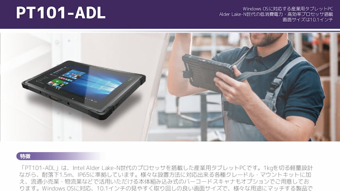 スペックや堅牢性はPT101-ADL/PT101-RPLほどでは無いものの、その分コストパフォーマンスに優れるモデルです。