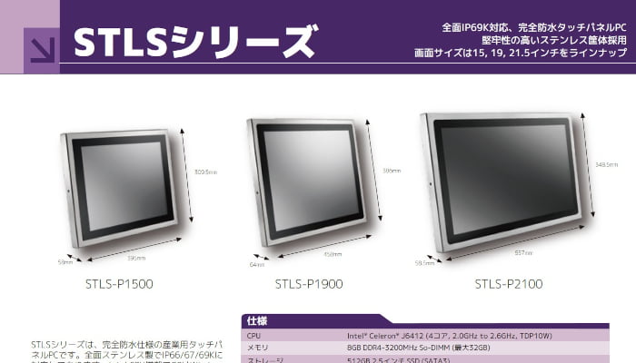 第九位:STLS-P1500|完全防水防塵タッチパネルPC