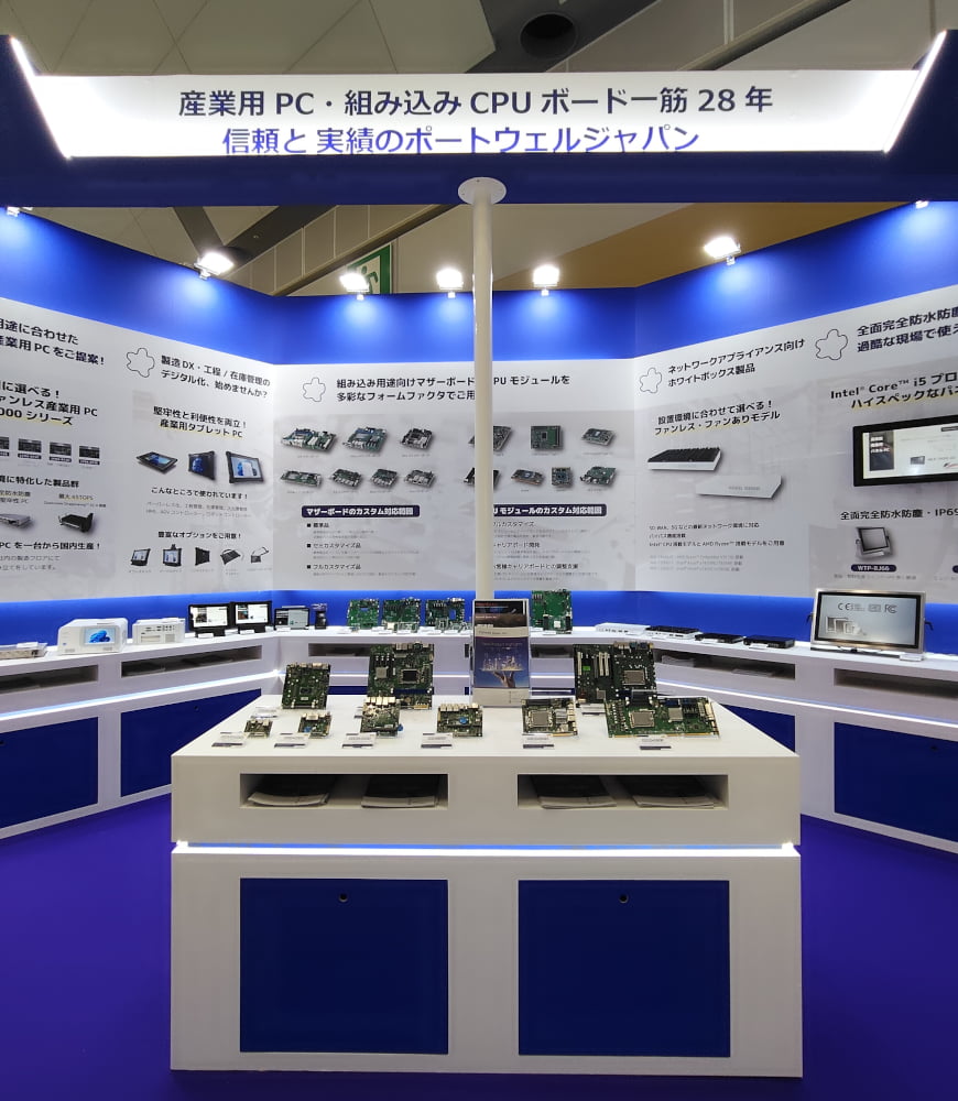 今回は「産業用PC・組み込みCPUボード一筋28年 信頼と実績のポートウェルジャパン」と銘打ち、1998年の設立から絶えず日本国内での実績を積み上げてきたポートウェルジャパンの誇る各種ハードウェア製品を展示しました。