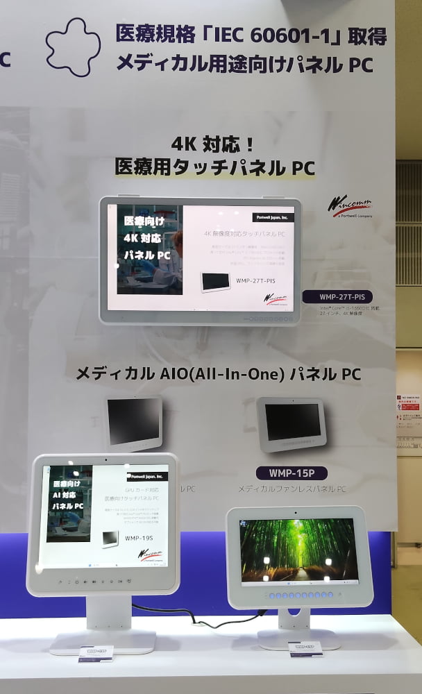 オールステンレス製、完全防水防塵仕様のPCや、フロントにタッチパネル搭載可能で医療規格も取得済のエッジAIサーバー、同じく医療規格取得のファンレスPCをそれぞれ初お披露目しました。